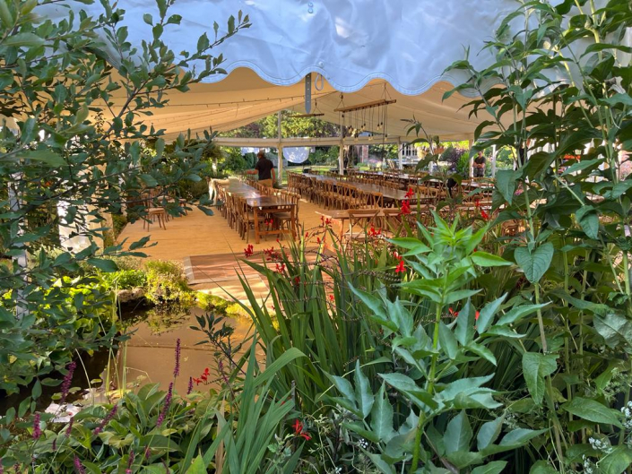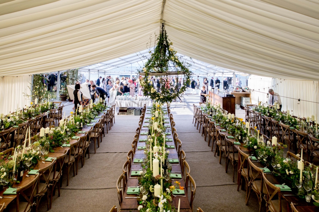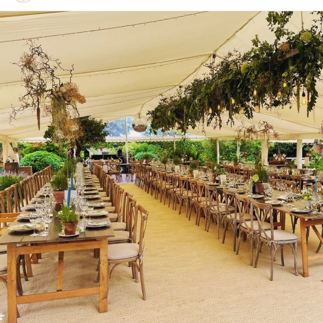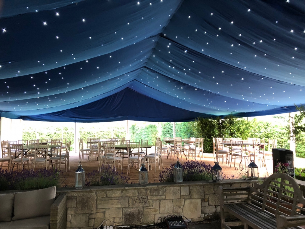 Clearspan marquees provide functional and yet attractive spaces. Like the Chinese Hats, they have no guide ropes and so take up less room, making them ideal for showgrounds, car parks, tennis courts as well as gardens. The Clearspan marquee has eliminated the need for centre poles, creating a larger internal space. If more natural light within the marquee is required then panoramic-style windows can be fitted along the sides with hard wood double doors, if necessary. Clients can choose to have their Clearspan Marquees left unlined or lined with either ivory flat or pleated linings, and for evening events our Starlight Lining can create a magical atmosphere for dinner and dancing. The Clearspan Marquee can be floored or left without a floor covering.